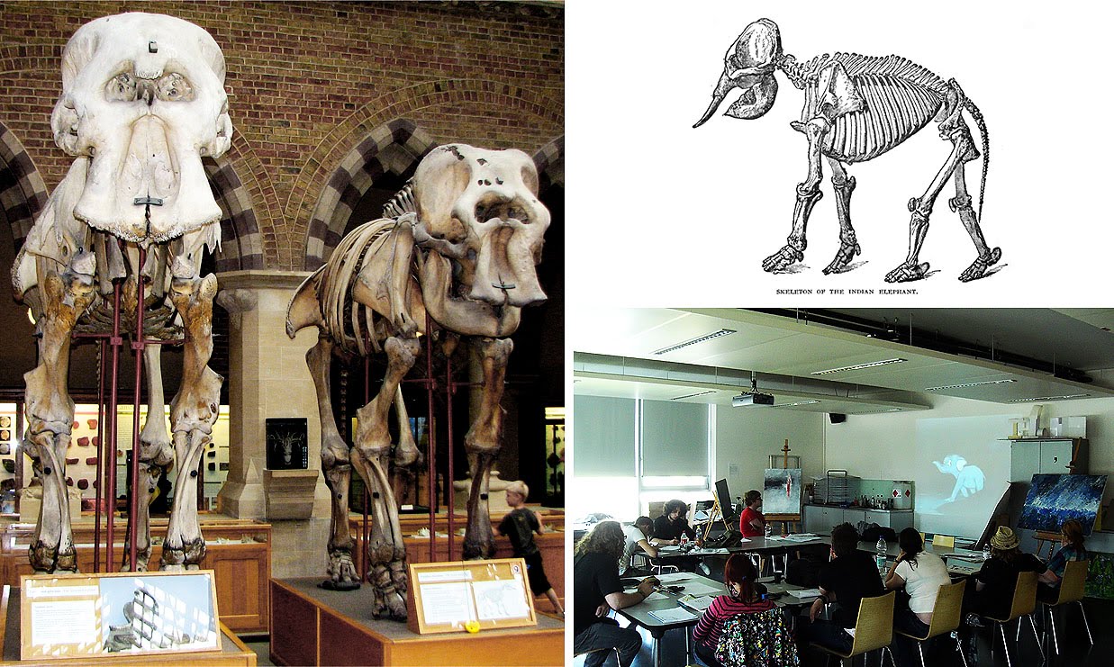 The story behind this piece is that last week, my students and I were exploring the bone structure/locomotory system of elephants and were watching the Disney short 'Goliath II' and became totally lost in designing characters from those references. The funny legged monsters (below on the right) are btw by the talented Dustin Schiele. Great abstraction on the theme, love it.