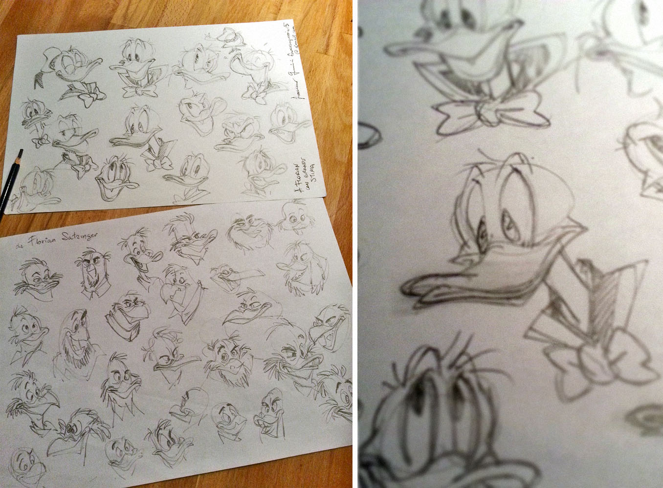 Uber-talented Disney artist Francesco Guerrini made me a one million dollar present in Florence during my workshop's lunch break, last Saturday. He presented me with two sheets full of original drawings of him. One sheet with Donald Duck all over it, the other one with beautiful versions of my own birds designs. I was really, really blown away. Francesco has no idea how big this is to me.